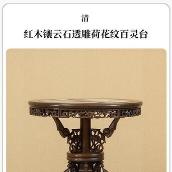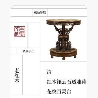 尺寸:79×79×84.7百灵台是中国古典家具的一种款式和名称,相传古代帝王欣赏各地进贡的宝物时,都将宝物陈列在此款家具之上,因为宝物都有灵气,加之每天有近百件宝物进贡,故而称为百灵台。