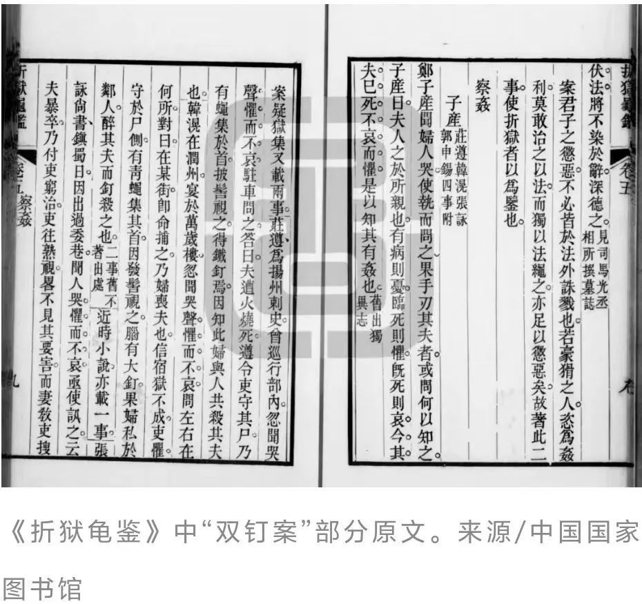 中国古代案例集《折狱龟鉴》卷五记载了这件“双钉案”的始末: